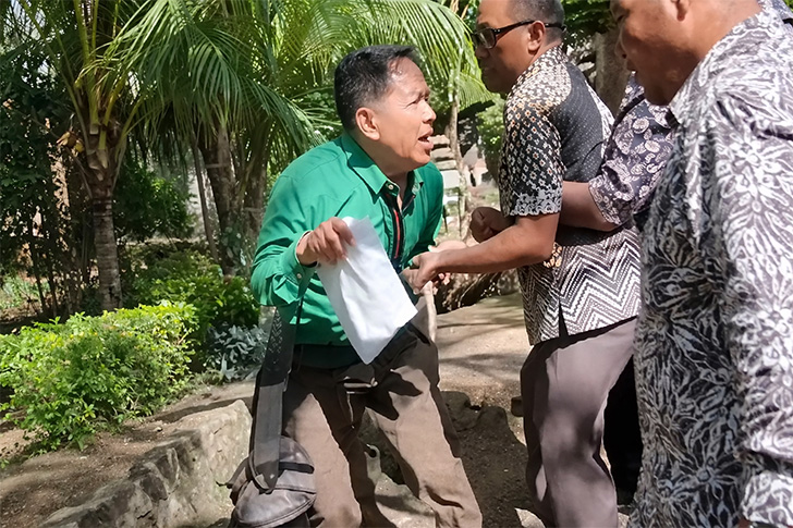 Pendeta Jems tetap mendatangi rumah pelaku. Sementara itu, istrinya menyusul bersama RL menggunakan sepeda motor. Saat berada di lokasi, pelaku tiba-tiba mendekati korban dan langsung mendorong serta memukul punggung pendeta satu kali.